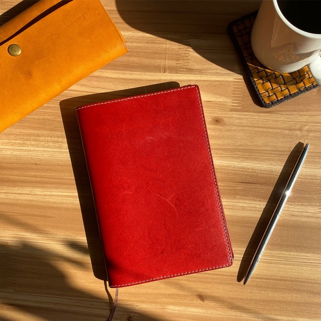 - 栃木レザーのヌメ革を使用したスケジュール帳カバー。毎日持ち歩くのでエイジング(経年変化)を楽しむのにうってつけのアイテムです。シンプルなつくりで、ミニポケットが1つだけ。A5サイズとA6サイズがございます。使用している栃木レザーのヌメ革(フルベジタブルタンニンレザー)は、しなやかさと丈夫さを持ちあわせており、使い込むほどに独特の色や味わいに変化していきます。持つ人のライフスタイルに合わせて変化していくその味わい深さにきっと、何とも言えない愛着が湧いてくるはず。色は、ナチュラルでかわいいパンプキン・トマト・マロンの3色をご用意致しました。