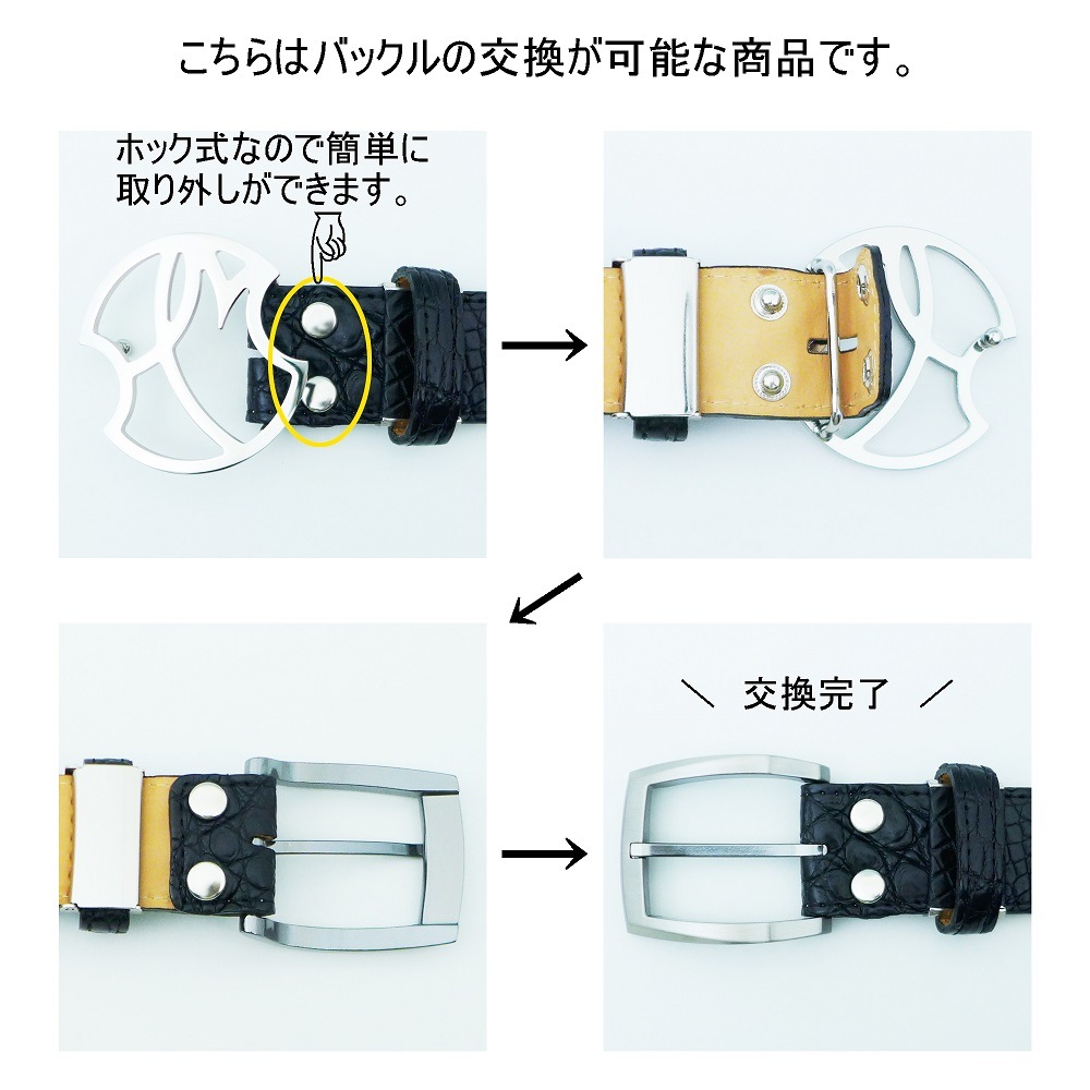 また、ホック式なのでご自身で簡単にお気に入りのバックルと交換することができます。