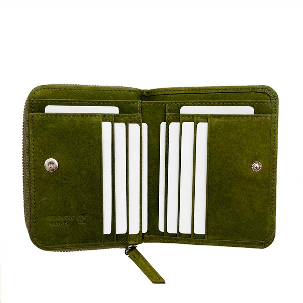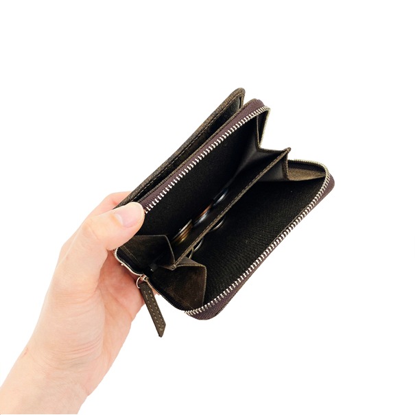 ファスナー小銭入れは口が大きく開き、仕切りもあるので小銭が出し入れしやすくなっております。