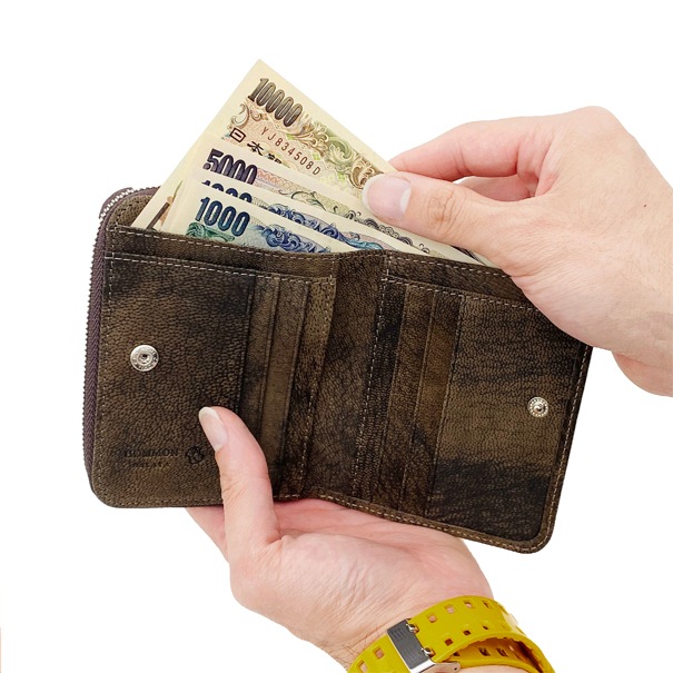 ファスナー二つ折り財布 ゴート(ブラウン) ホース(カーキ)