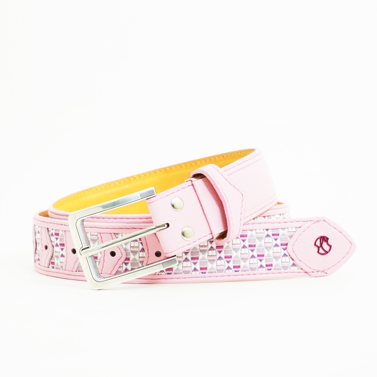 博多織×カーフ ベルト ピンク 40mm
