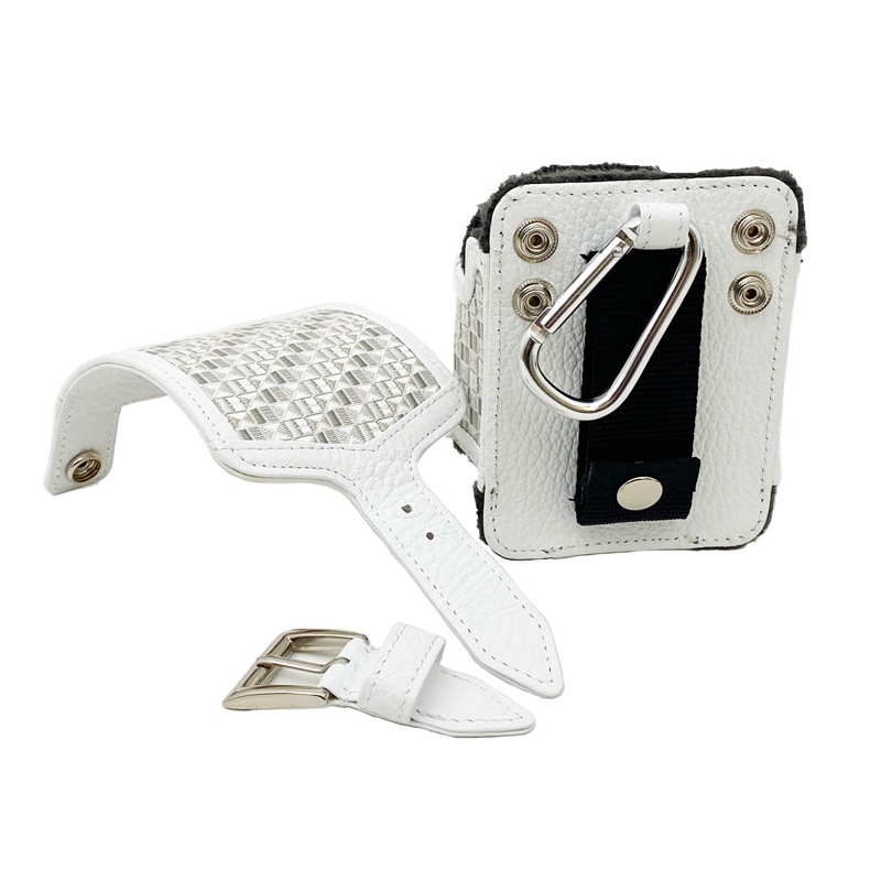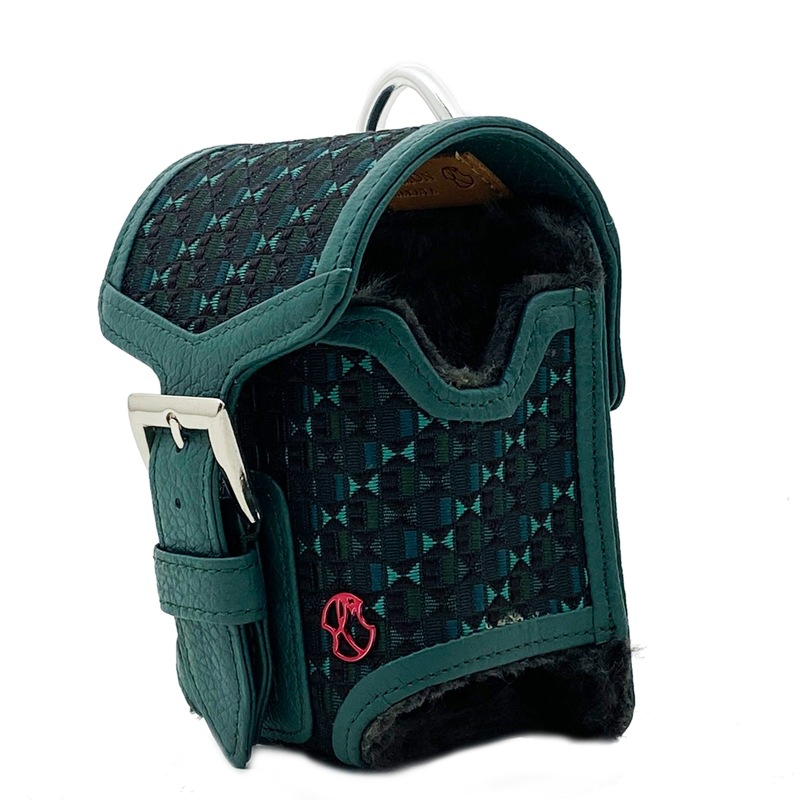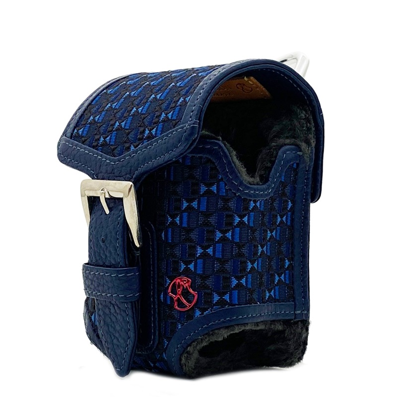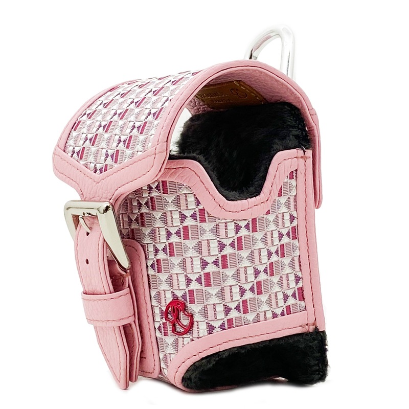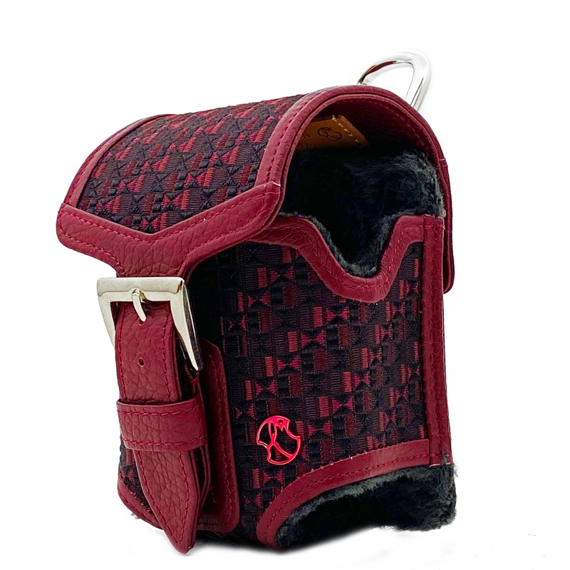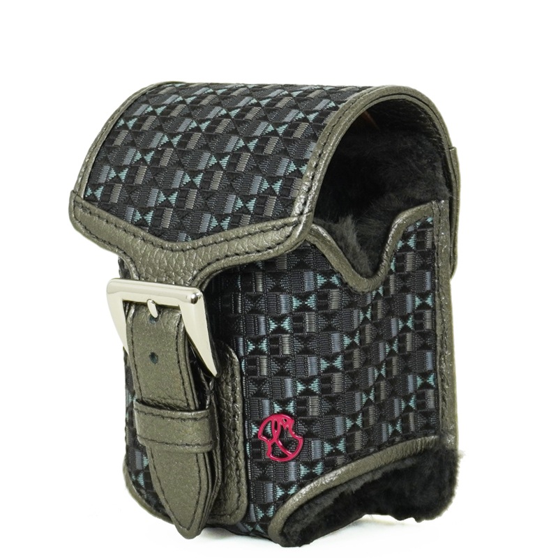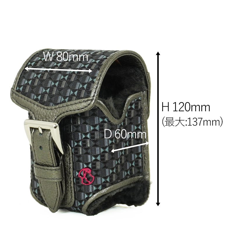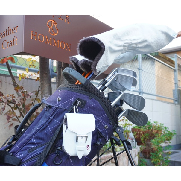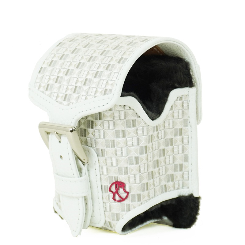 隠しマグネット付きのフタで快適なプレーを可能に。フック付きの機能的なデザインで、キャディーバッグ等に簡単に取り付けができます。サイドのカーブのデザインは、器械を直接つかみやすいデザインになっています。ふわふわのボアで器械を衝撃から守ってくれます。後ろはホック付きでベルトに簡単に装着できます。(ベルト幅4cmまで)