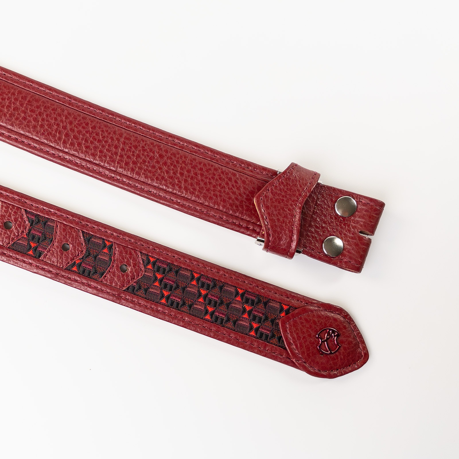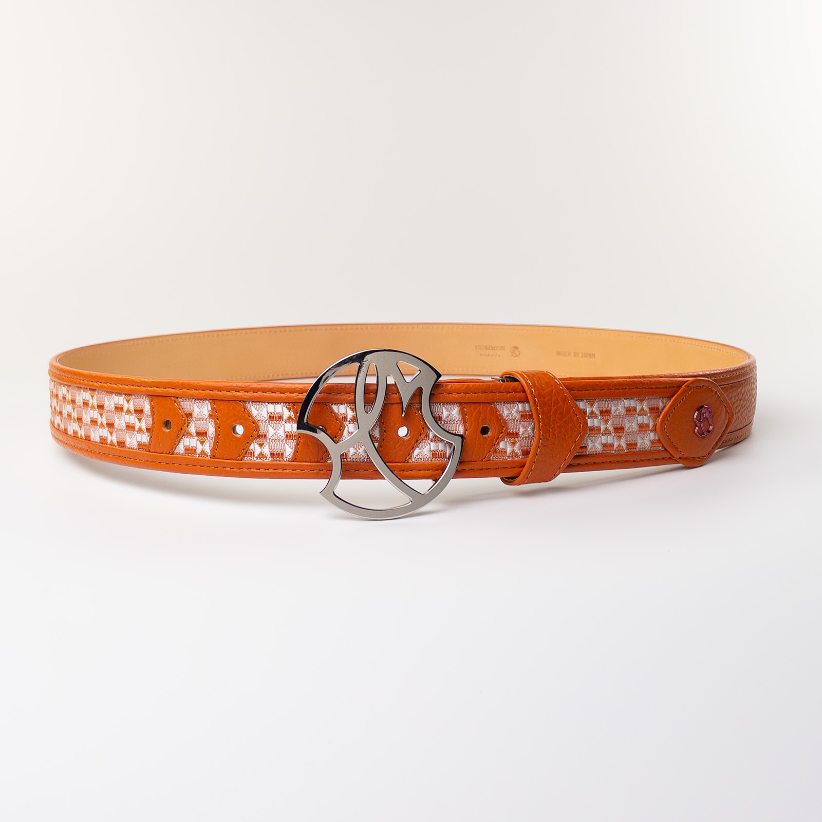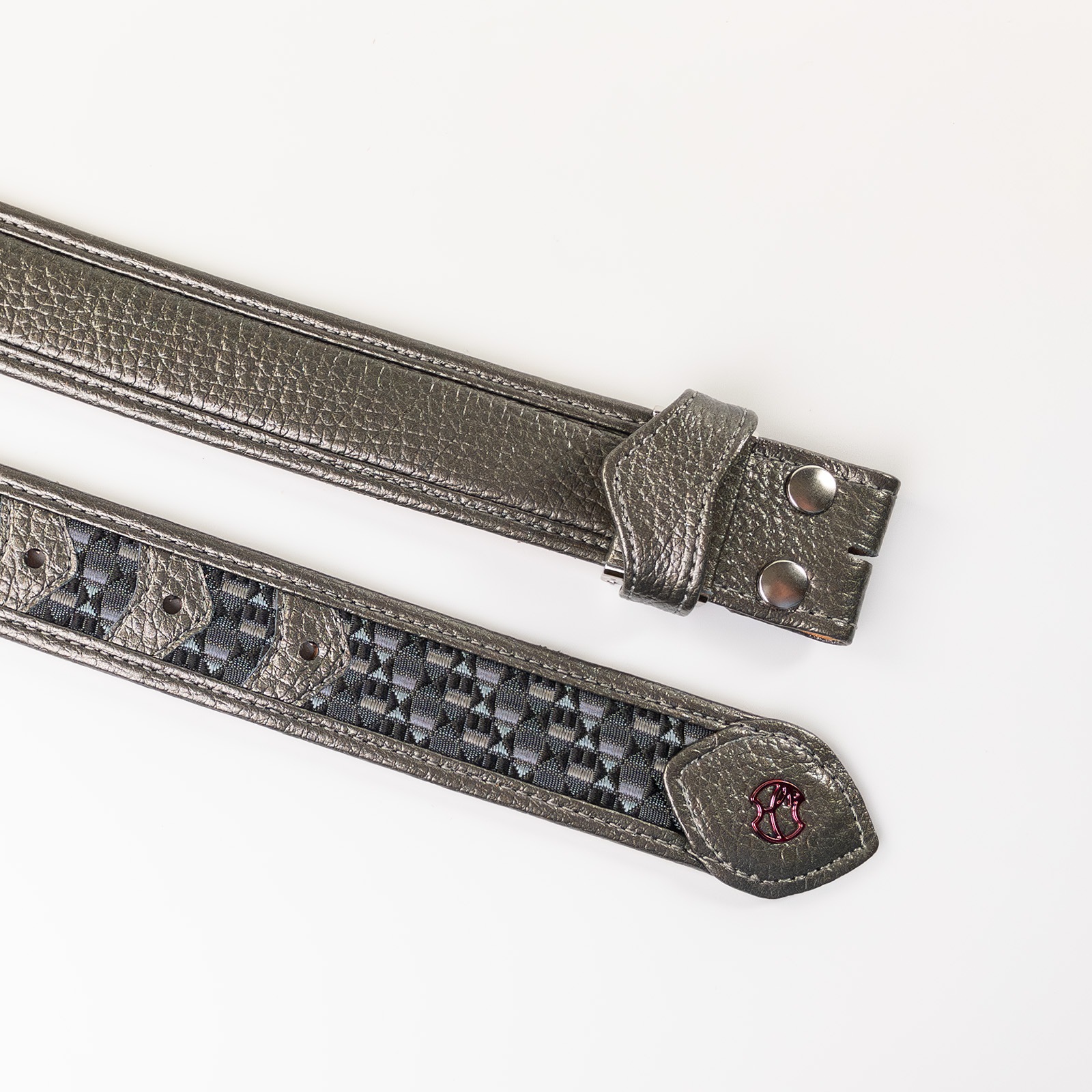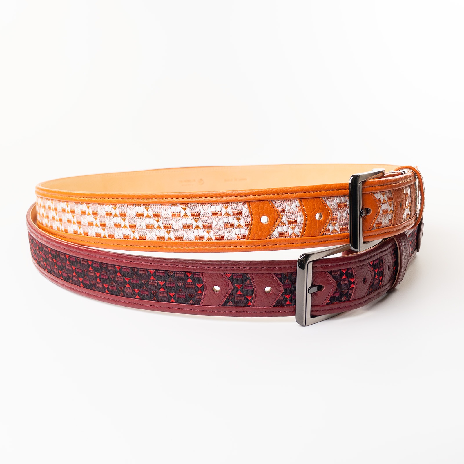 - 博多の伝統工芸である博多織とレザーのコラボレーションベルトストラップ。糸からこだわり、HOMMON HAKATAオリジナルカラーで織っていただきました。