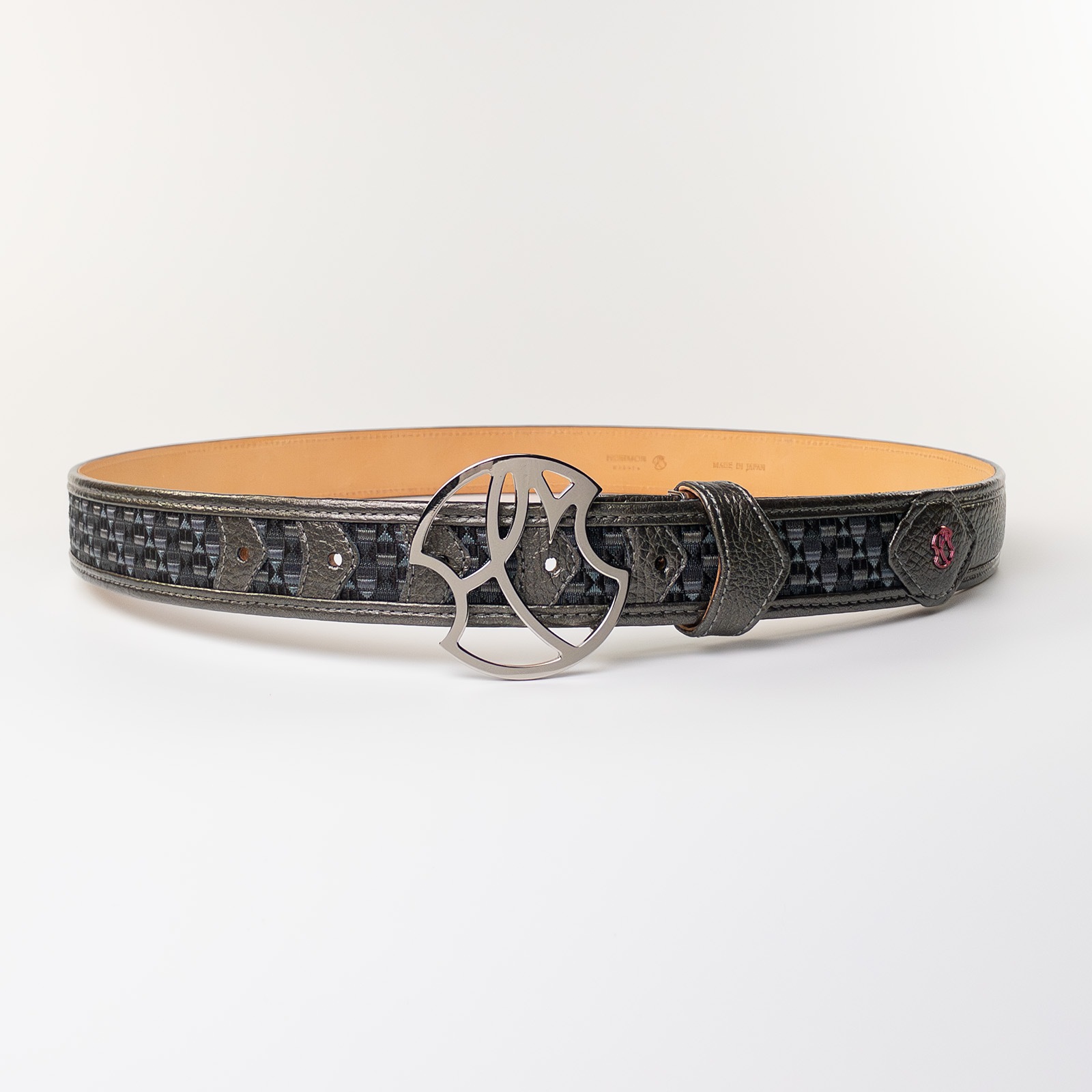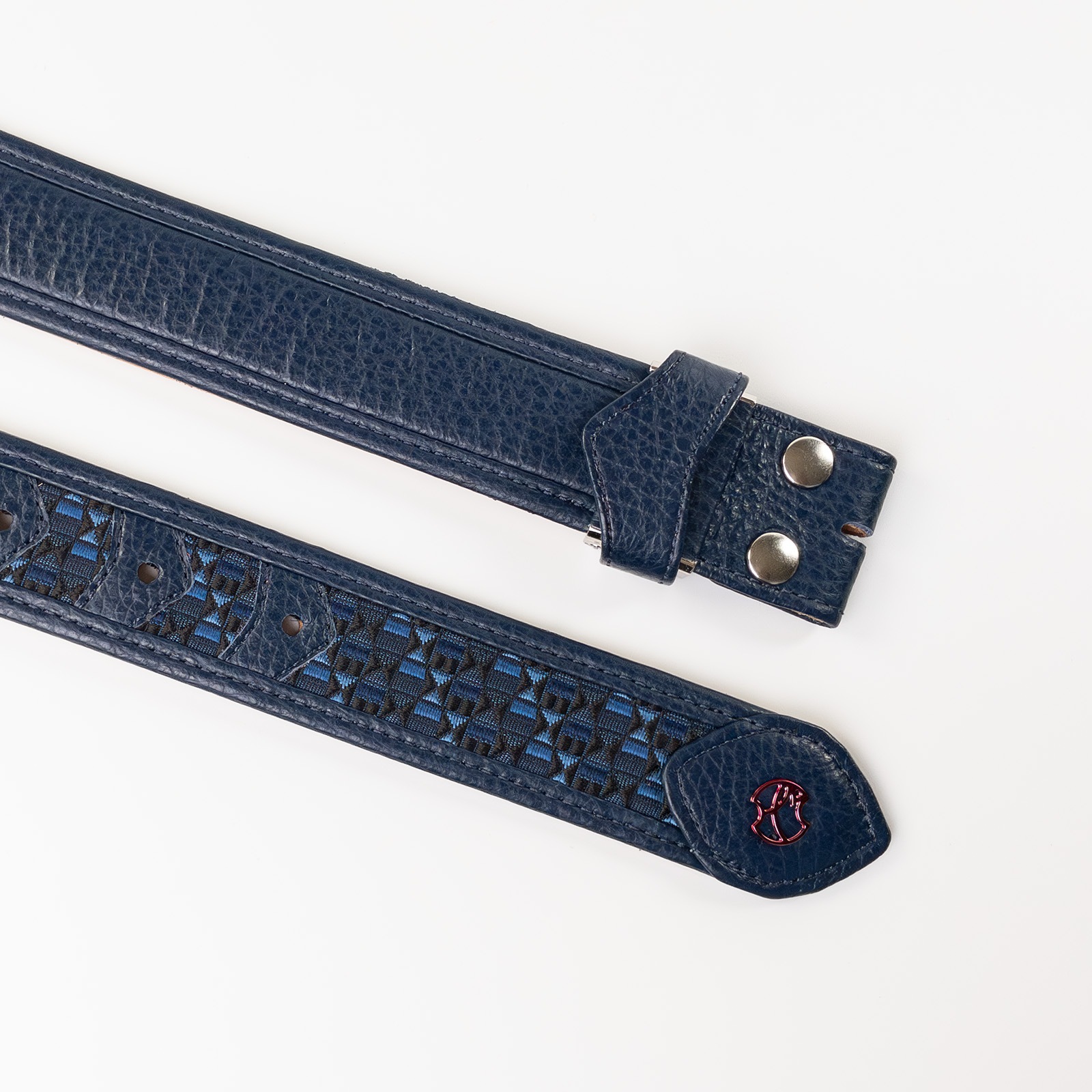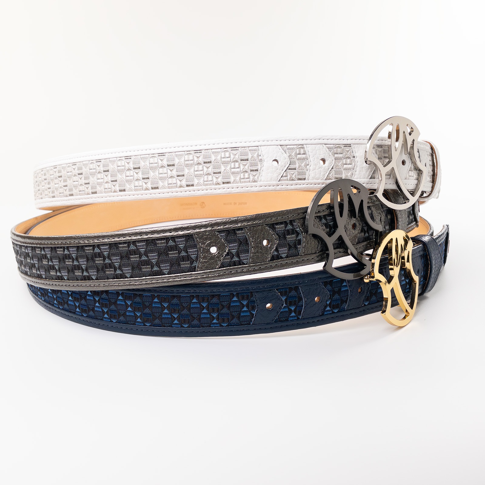 - 博多の伝統工芸である博多織とレザーのコラボレーションベルトストラップ。糸からこだわり、HOMMON HAKATAオリジナルカラーで織っていただきました。