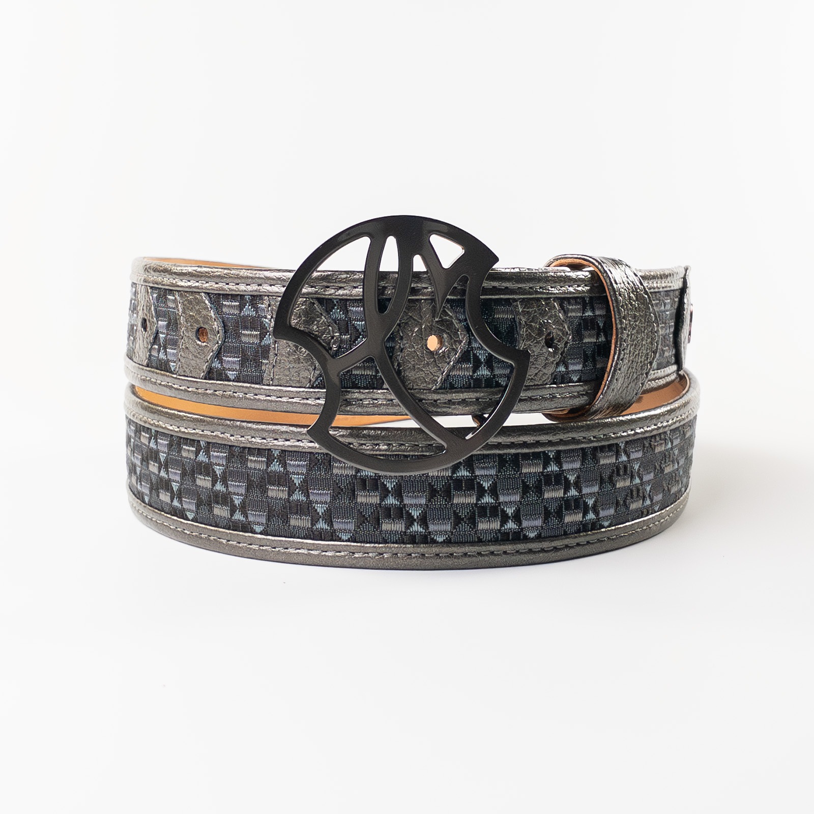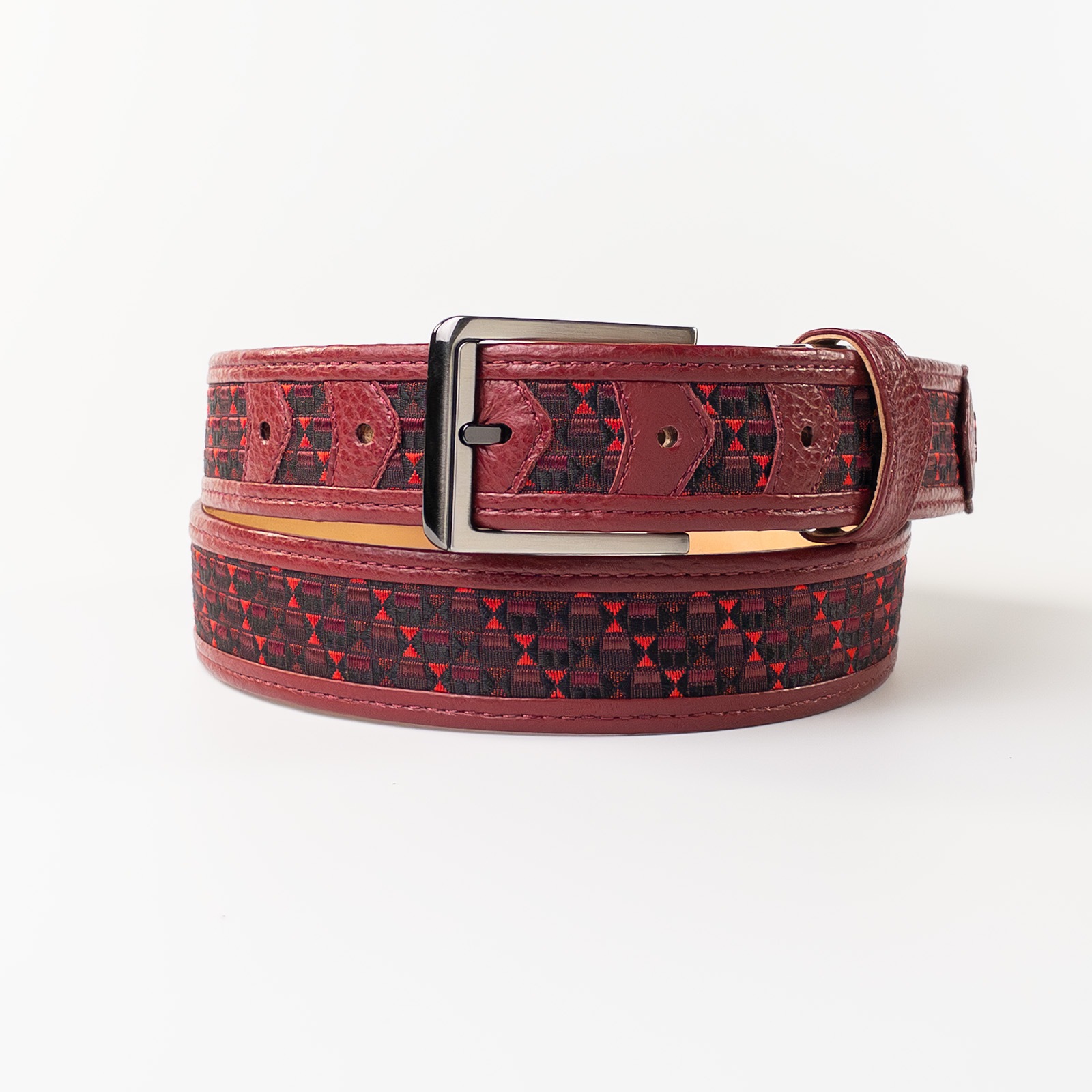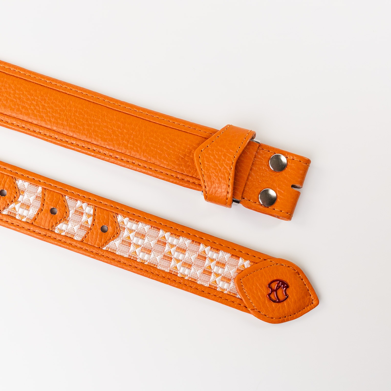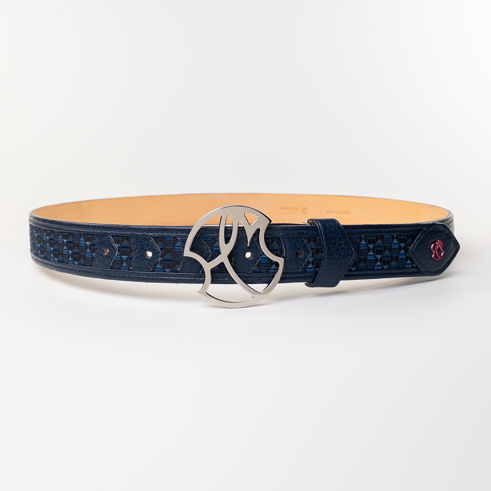 - 博多の伝統工芸である博多織とレザーのコラボレーションベルトストラップ。糸からこだわり、HOMMON HAKATAオリジナルカラーで織っていただきました。