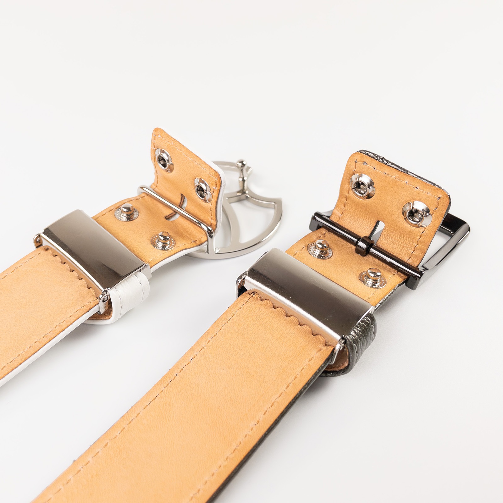 ホック式でご自身で簡単にお気に入りのバックルと交換することができます。お好みのバックルと組み合わせてオリジナルのベルトをお楽しください。