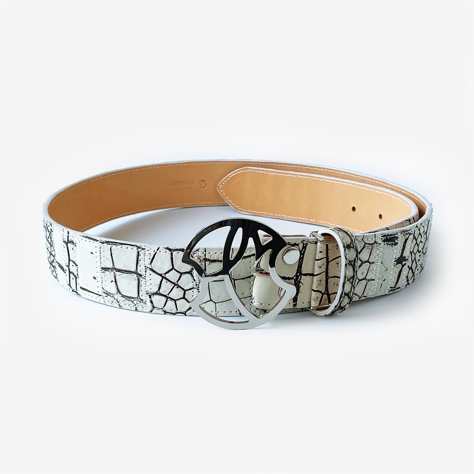 クロコ パッチワークベルト 40mm アンティークベージュ