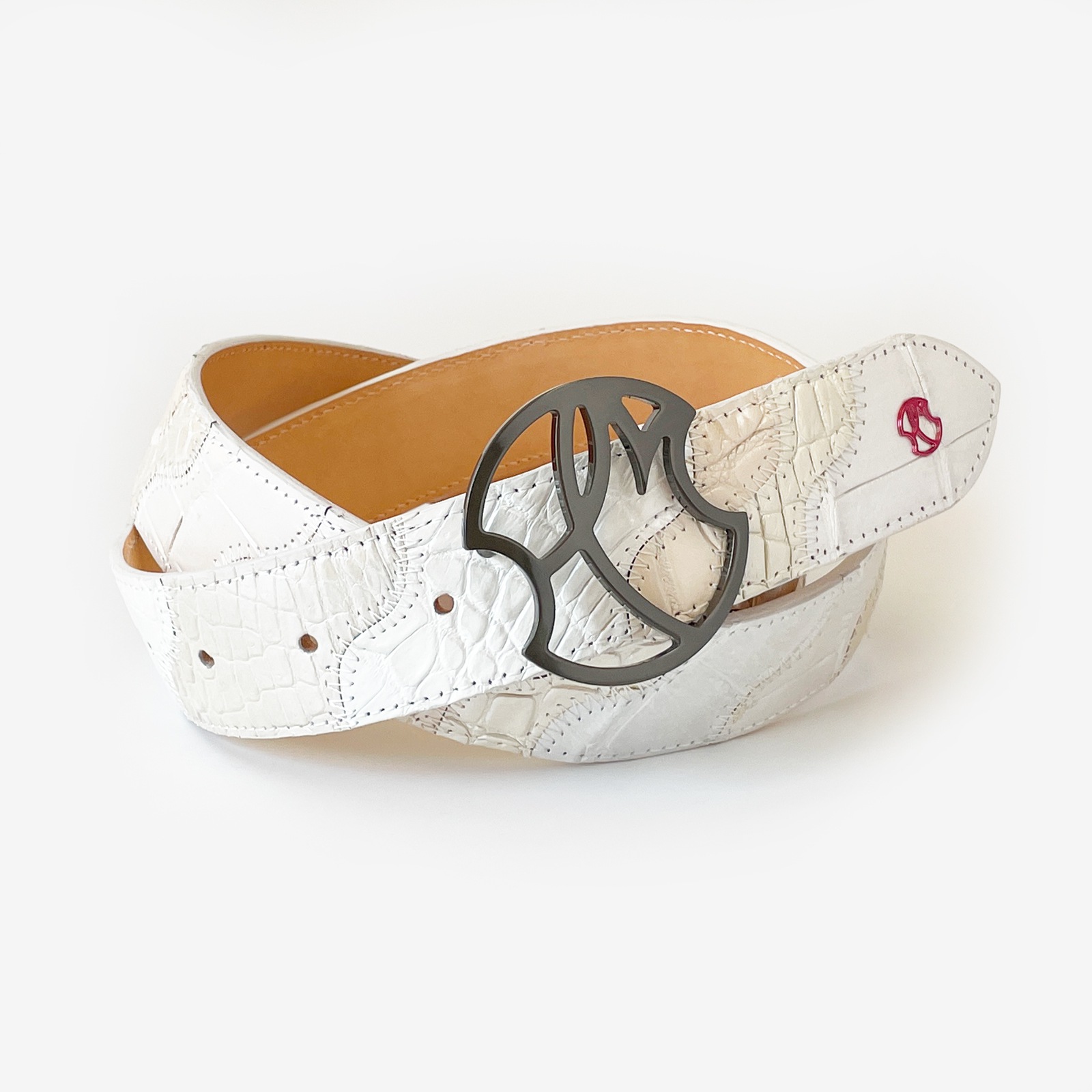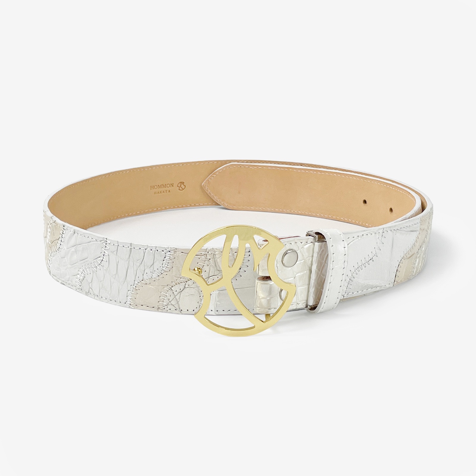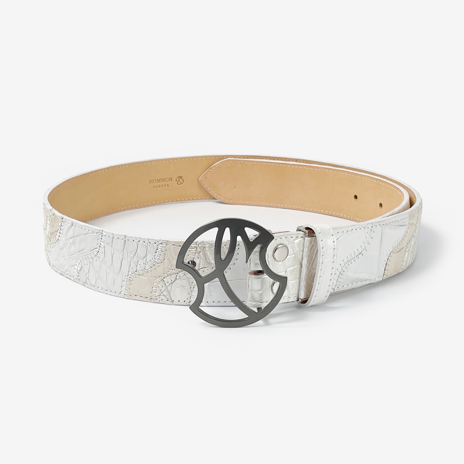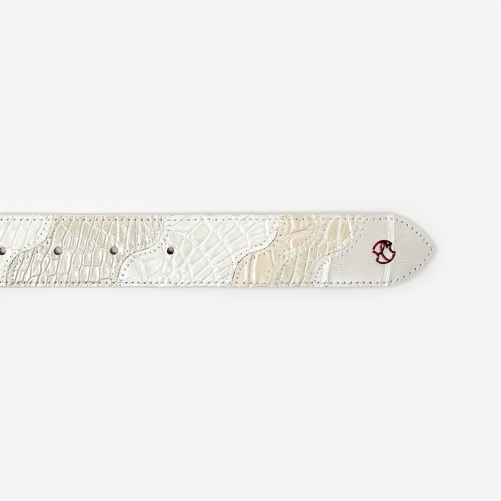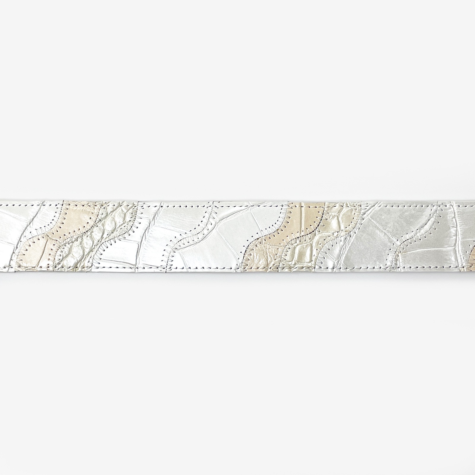 クロコダイル パッチワークベルトストラップ 40mm パールホワイト