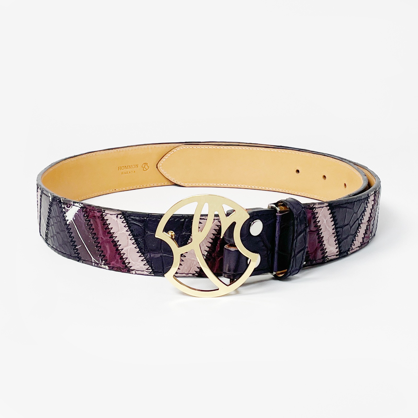クロコダイル パッチワークベルトストラップ 40mm ヴィオラ/ワイン