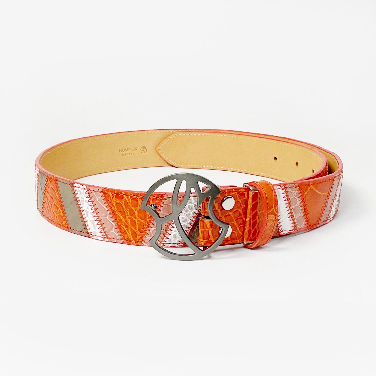 クロコダイル パッチワークベルトストラップ 40mm タンジェリン