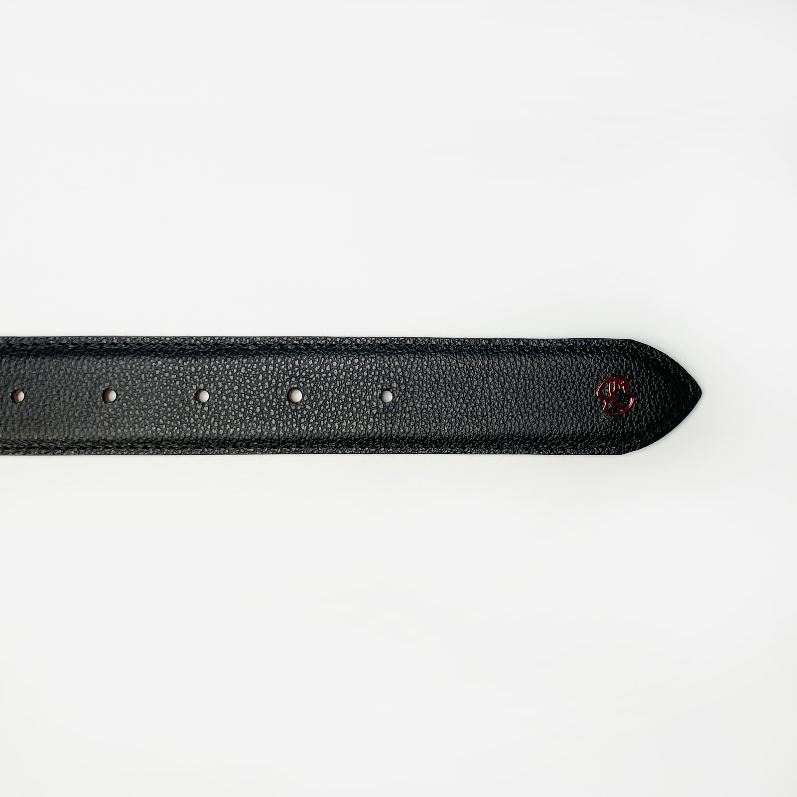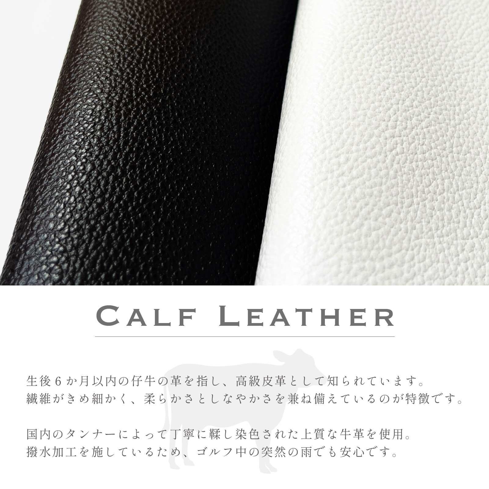 カーフのシンプルなレザーベルトストラップ。カーフ特有のシボ感が特徴的で、撥水加工を施しております。ゴルフウェアにはもちろん、ビジネス等の普段使いにもピッタリな万能な1本。※撥水効果は経年変化とともに弱まります。